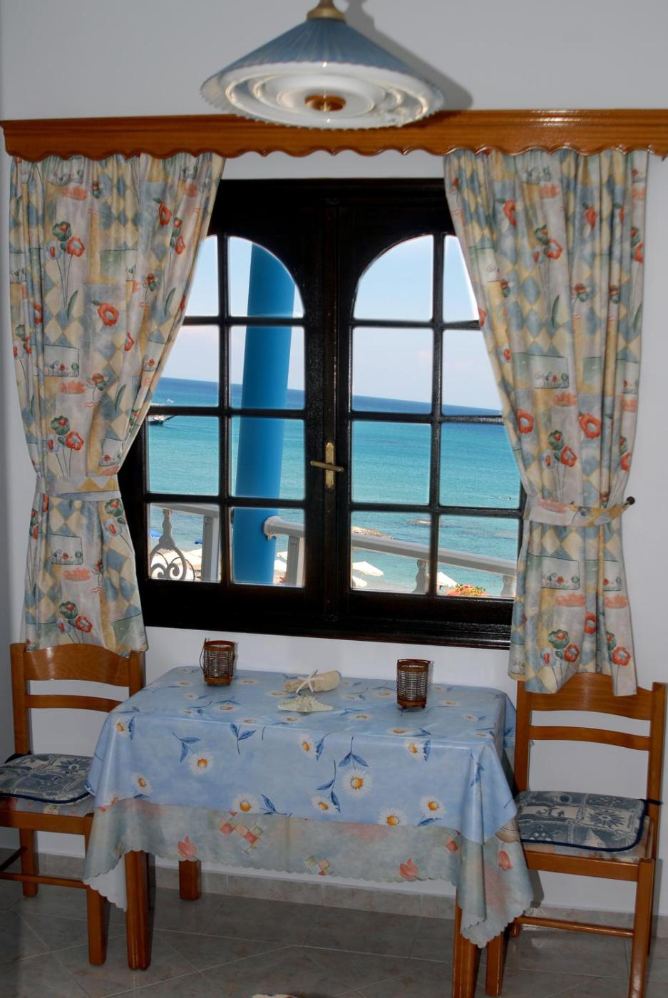 Studio with Sea View - Ground Floor (Ilion 1). An air-conditioned studio by the sea, 10 meters from the beach with a sea view balcony. Air-conditioned studio with a sea-view terrace, a fully-equipped kitchen with fridge and oven, and a bathroom with shower or bath tub. A satellite TV is available. Free WiFi is provided. ;