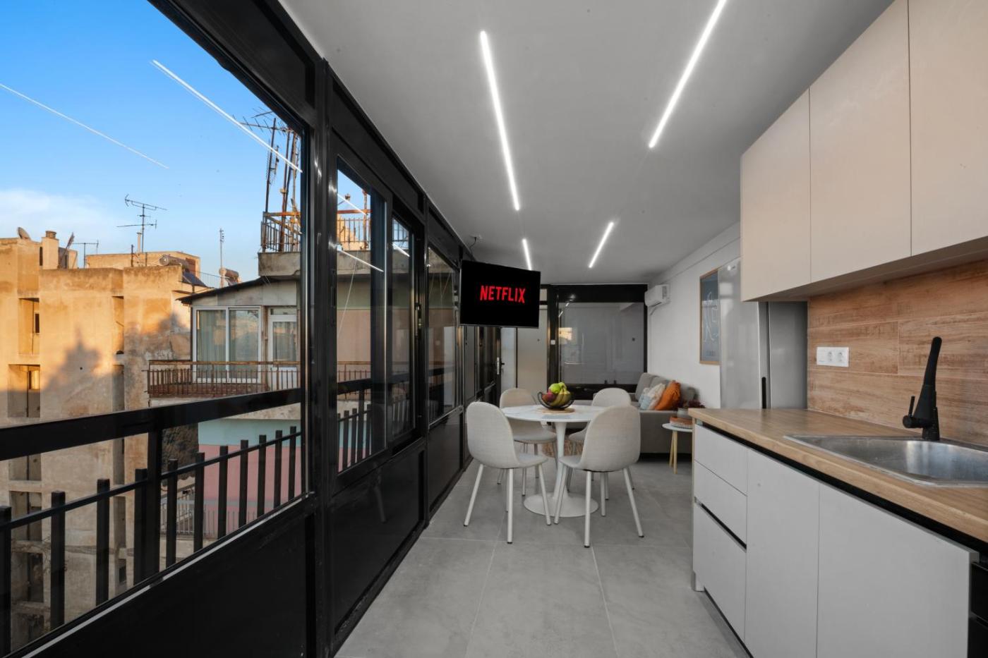 One-Bedroom Apartment. Boasting a private entrance, this air-conditioned apartment features 1 living room, 1 separate bedroom and 1 bathroom with a shower and a hairdryer. In the kitchen, guests will find a stovetop, a refrigerator, kitchenware and an oven. Featuring a terrace with city views, this apartment also features a washing machine and a flat-screen TV. The unit has 2 beds.