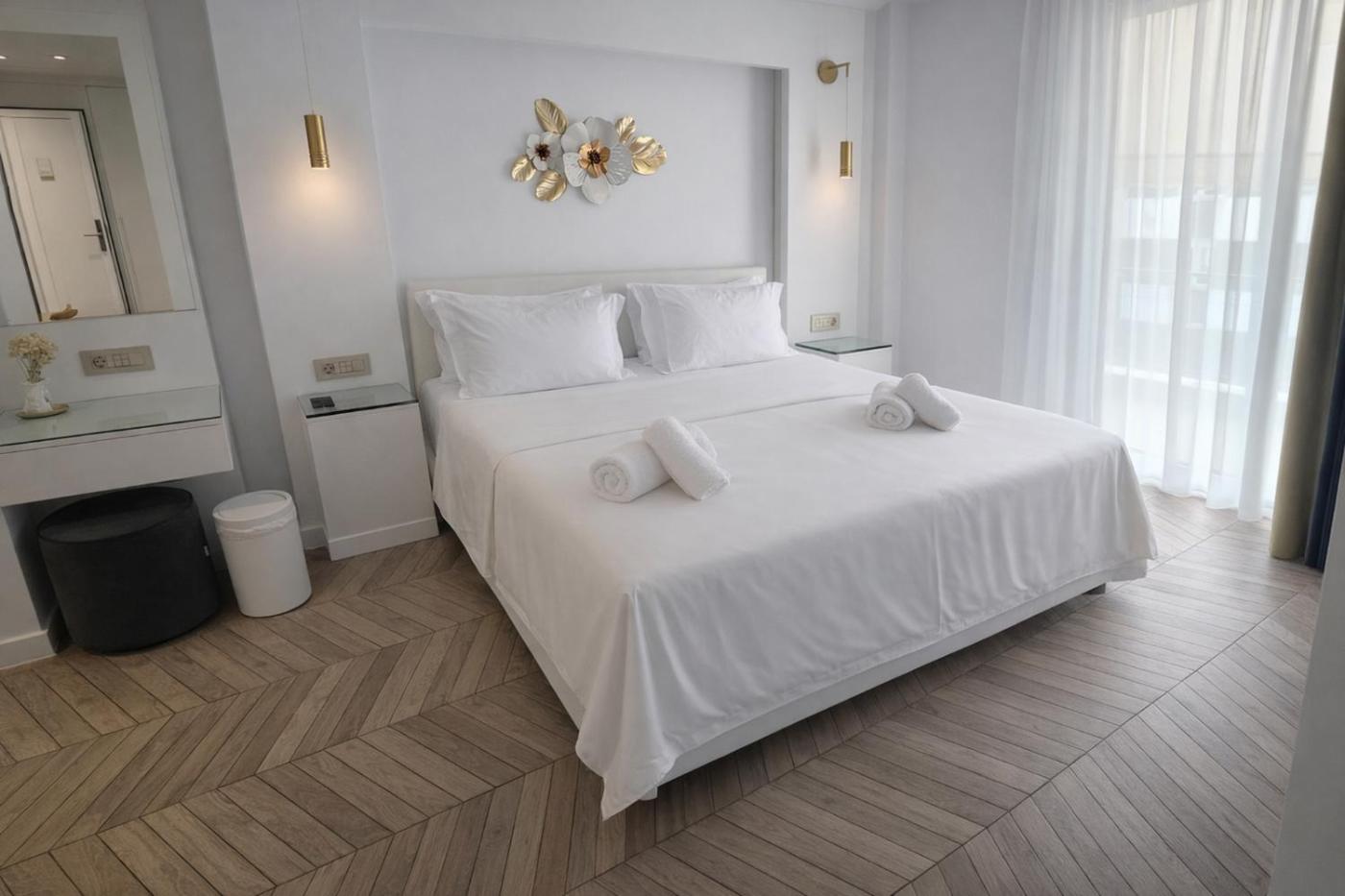 Deluxe Double Room. Providing free toiletries and bathrobes, this double room includes a private bathroom with a shower, a hairdryer and slippers. The spacious air-conditioned double room provides a flat-screen TV with streaming services, a private entrance, soundproof walls, a minibar as well as ancourtyard view. The unit offers 2 beds.