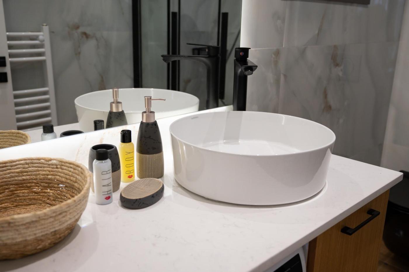 One-Bedroom Apartment. This apartment consists of 1 living room, 1 separate bedroom and 1 bathroom with a walk-in shower and free toiletries. The fully equipped kitchen features a stovetop, a refrigerator, kitchenware and an oven. The air-conditioned apartment provides a flat-screen TV, a washing machine, a tea and coffee maker, a seating area as well as city views. The unit offers 2 beds.