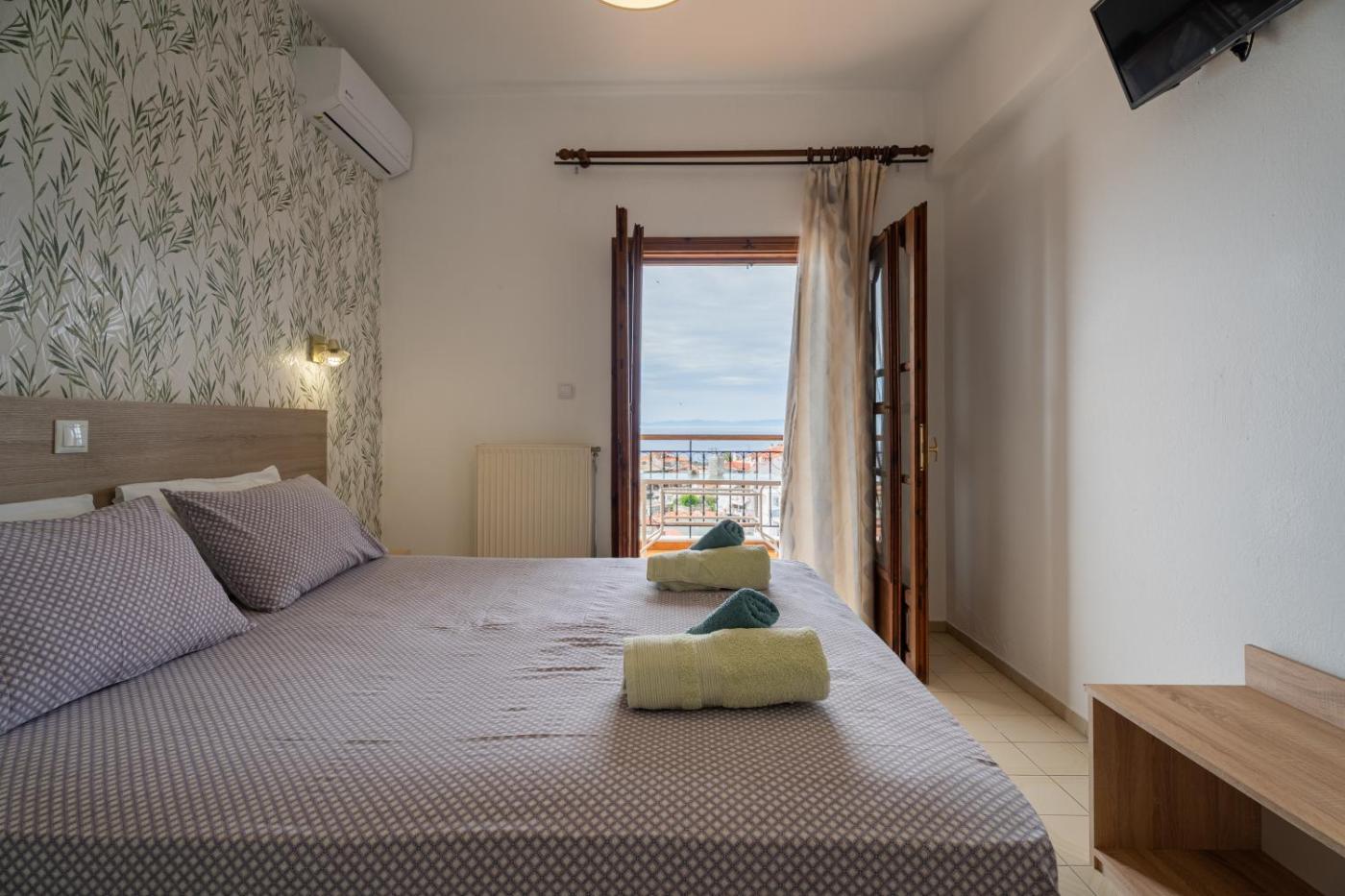Studio with Sea View (2 Adults). Enjoying views to Kassandra Bay from its balcony, this air-conditioned studio features a kitchenette with cooking hobs and mini fridge. It offers: - free Wi-Fi - TV - desk with mirror. ;