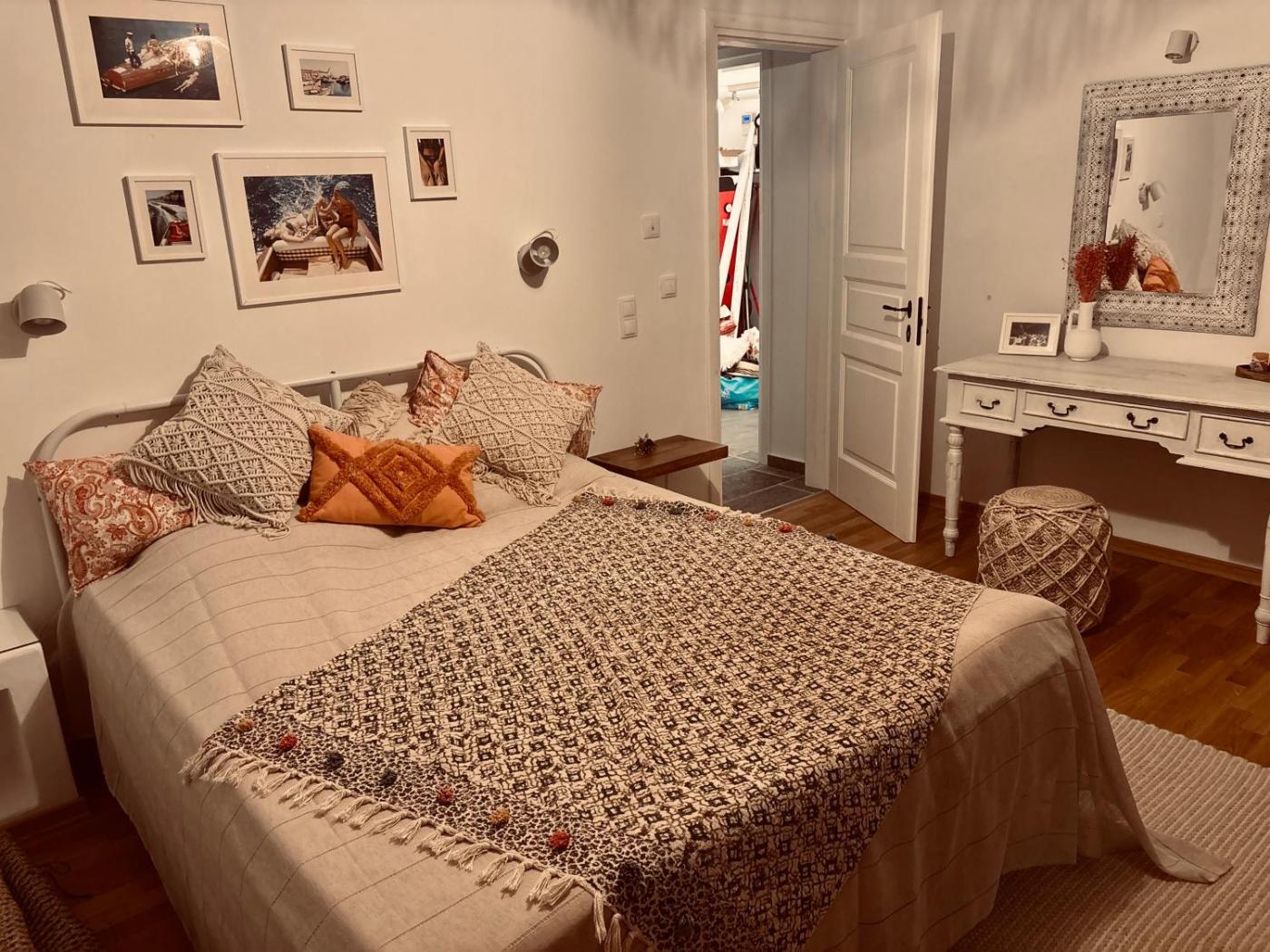 The air-conditioned holiday home consists of 2 bedrooms, a living room, a fully equipped kitchen with a dishwasher and a coffee machine, and 2 bathrooms with a shower and slippers. A private entrance leads gueststhe holiday home,they can enjoy some wine or champagne and fruits. There is also a seating area and a fireplace.